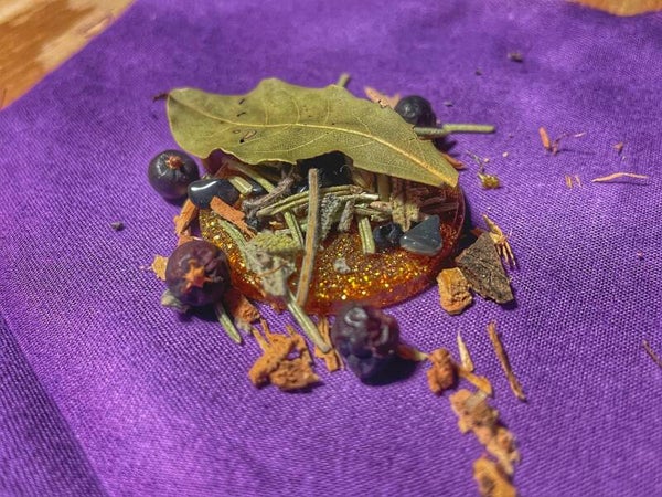 - Contient : Plantes séchées, pierre semi-précieuse, accessoires naturels, créations en résine, choisis selon l'ntention selectionnée.