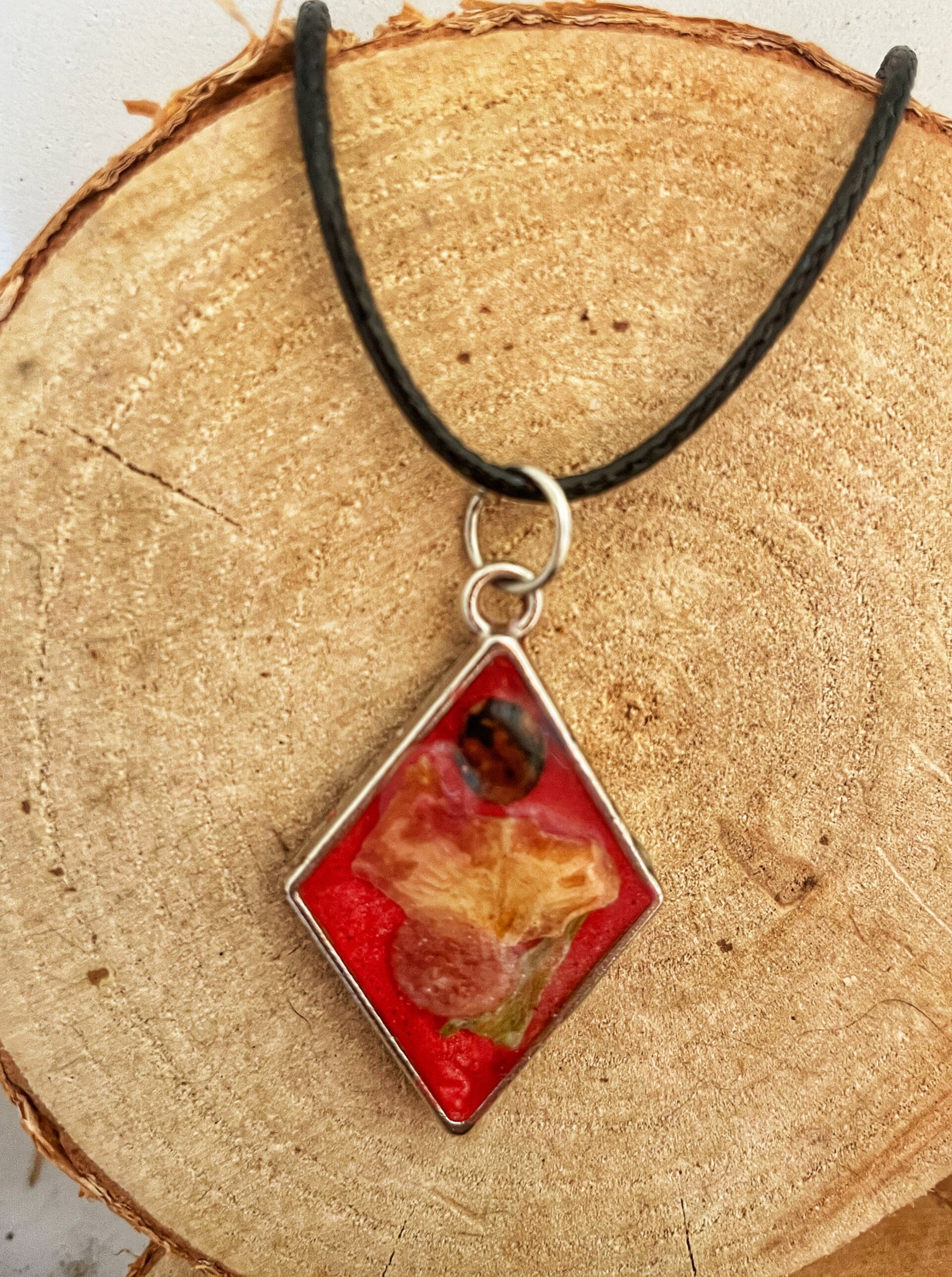 ▪️ Le Pendentif énergétique - Une pièce unique, en résine époxy, intégrant une pierre, des plantes et des couleurs spécifiques, pour porter l'énergie de l'amour sur vous, au quotidien.