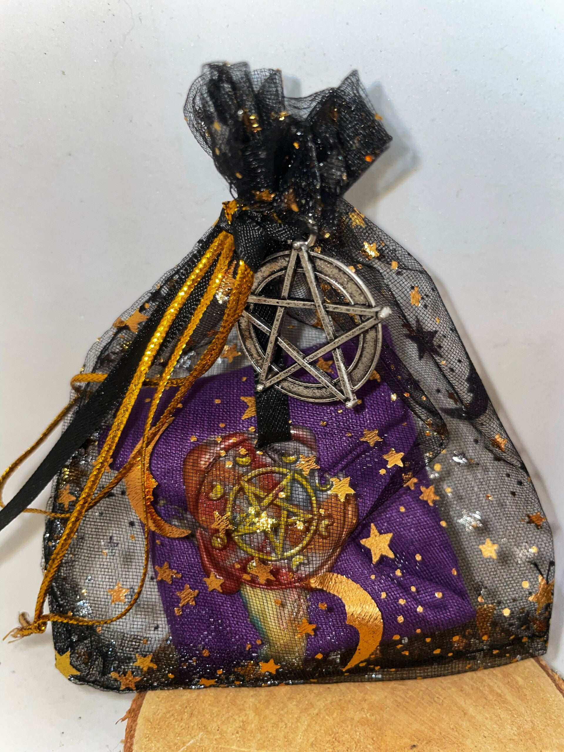 🔸 Le Sac Mojo – Une pochette énergétique contenant un mélange de plantes, de pierres et d’huiles vibratoires, infusé d’intentions magiques pour faciliter la libération et la protection.